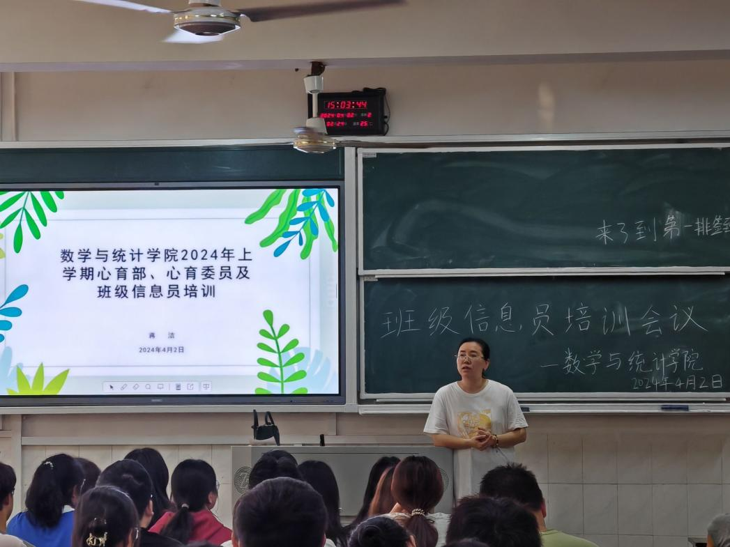 心育部组织,学工班主任、心育专干蒋洁老师主讲的2024年上学期心育部、心育委员和班级信息员培训会议于4月2日和4月23日分别在城南校区与东方红校区顺利开展。