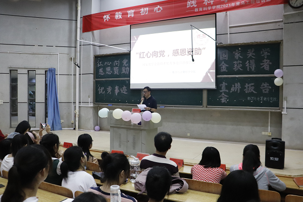 在怀中南110举行“红心向党,感恩资助”国家奖学金获得者优秀事迹报告会,学院领导、全体辅导员、教师代表及300余名学生参加了此次报告会。