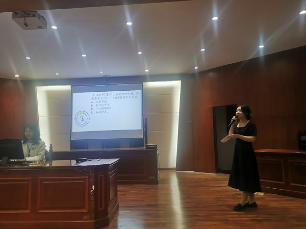 团总支联合学生党支部开展“学党史·强信念·跟党走”为主题的团支部特色活动,特色活动答辩在模拟法庭隆重举行。学院党总支书记曾玉华、党政办主任戴建宇、院长助理李雅湘、全体辅导员及学生代表参与本次活动。