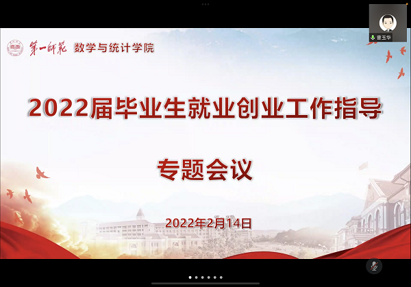 线上组织召开2022届毕业生就业创业工作指导专题会。学校招生就业处领导、学院全体党政领导、学工办主任、就业专干、毕业班辅导员、2022届全体毕业生及家长代表参加动员会。会议由学院李静副书记主持。