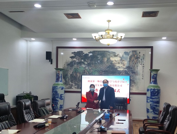 与湖南爱尔龙科技教育有限公司在学院会议室隆重举行了院企产学研合作协议签署仪式。学院副院长李雅湘、副书记李静、副院长王增赟、院长助理何孝凯、爱尔龙教育科技有限公司董事长刘良春先生及爱尔龙产品研发团队出席了本次签约仪式。仪式由王增赟副院长主持。