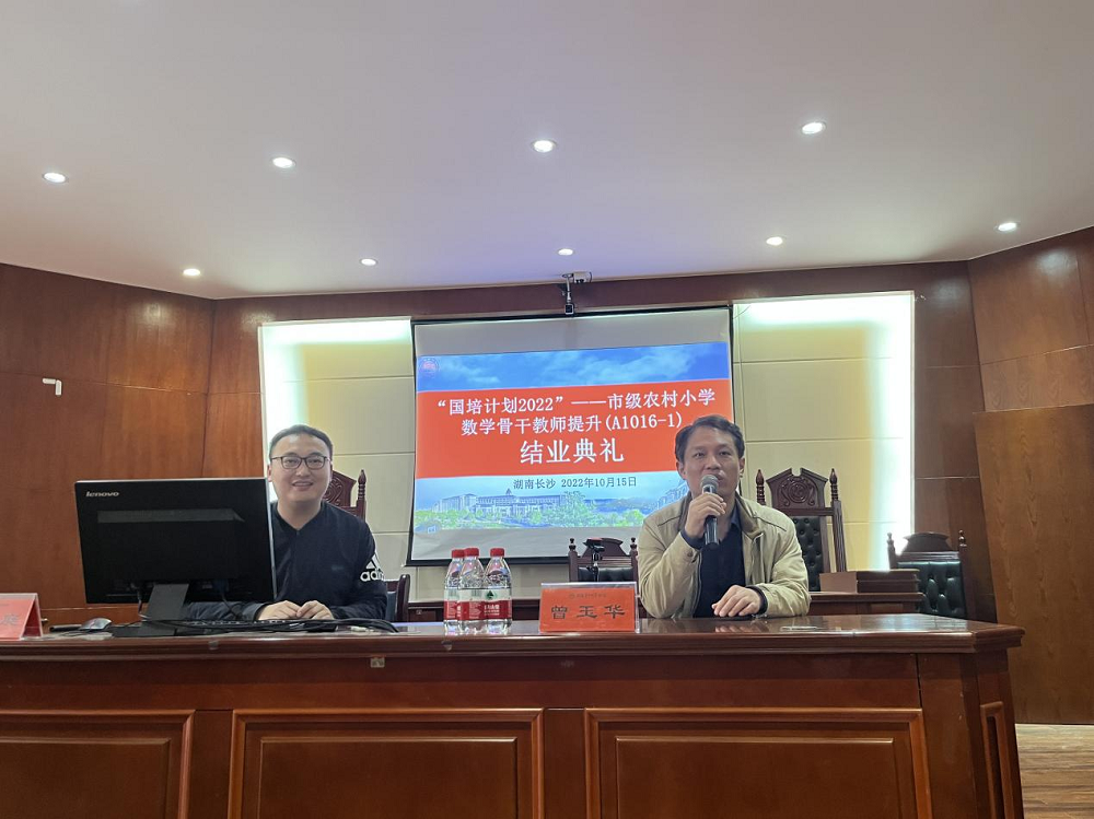 承办的“国培计划(2022)”——市级农村小学数学骨干教师提升研修项目(A1016-1)线下集中培训圆满结束,结业典礼在湖南一师特立南楼112教室举行。工作坊坊主曾玉华、班主任罗庭辉出席典礼。
