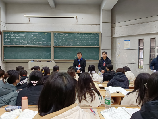 张更容教授及王志勇博士讲授的《数学分析二》课程。教学过程中,师生精神状态都很饱满,学生出勤率高,教学秩序良好。课后,胡校长与学院领导和授课教师进行了交流,他对人妻