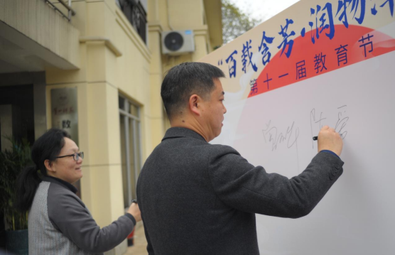 活动开始前,师生代表在教育节签名板上签字留念。首先,曾玉华为此次活动致辞,他表示,教育节是人妻