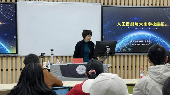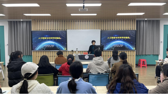 为师生们带来了一场题为《人工智能与未来学校建设》的学术讲座,讲座由童小娇教授主持。