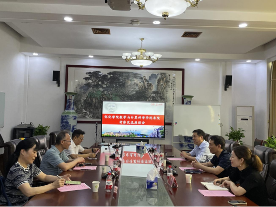曾玉华代表学院对怀化学院数计院三位领导的到访表示热烈的欢迎。他简单介绍了我校的历史沿革、学校第二次党代会提出的“一四”发展战略,以及学院践行办学新理念的基本情况。陈爱永介绍了学院的发展历程,在师资力量、学科平台、专业建设以及人才培养方面取得的成就,以及学院的“十四五”规划。接着,怀化学院唐志为、刘建国两位领导分别介绍了怀化学院数计院的党建工作、师资队伍建设、学科专业建设、学生培养情况等。最后,曾玉华向怀化学院来访领导就人妻