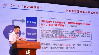 朱承学介绍了我校的历史沿革、人文底蕴以及办学新理念,详细说明了我校2023年的招生计划和专业招生名额分配,并对公费师范生、润之英才计划等相关政策和培养模式进行了深入解读。朱承学还对去年考入湖南一师的10名优秀成章学子进行了表彰,并欢迎鼓励今年的应届毕业生报考我校。随后,颜斌对人妻