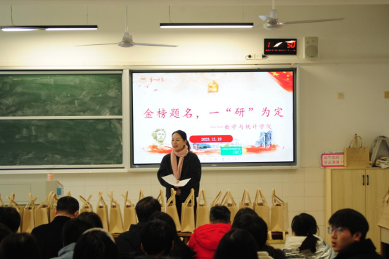 考研指导老师代表何孝凯分享了自身考研经历,鼓励同学们积极调整心态,合理安排作息,学会自我减压,以良好的心态迎接挑战。张更容教授因工作原因未至现场,特意为20级信科专业和应数专业的考研学子们送来16字祝福,“第一师范,一‘研’为定,相‘信’大家,‘应’得尽得!”。