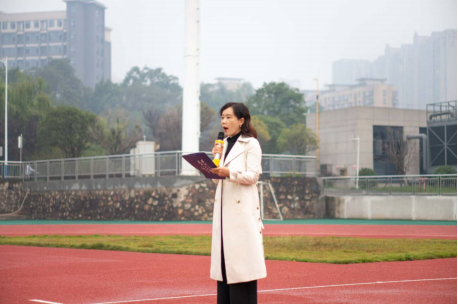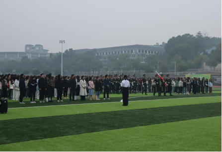 在东方红校区田径场隆重举行升国旗仪式。学院党委书记曾玉华、副书记申鸣凤、学工办主任吉先菊、全体辅导员及23级学生共同见证这一庄严时刻,仪式由学生代表黄依美主持。