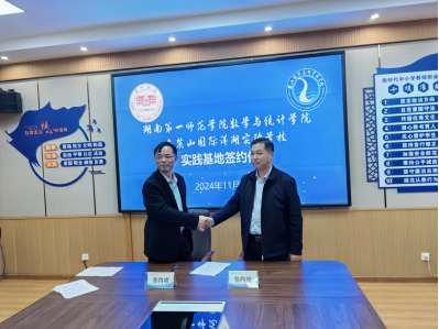 与长沙市麓山国际洋湖实验学校举行了实践基地签约仪式。学院院长陈爱永、学院副院长王增赟、长沙市麓山国际洋湖实验学校党总支书记周佳、校长肖伟、副校长施源、副校长肖彤、副校长王小武等校领导参加实践基地签约授牌仪式。