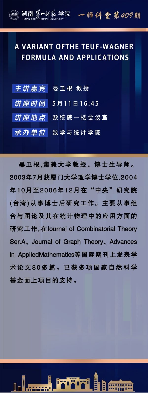 学术报告|数学高峰讲坛第63期:A variant ofthe Teuf-Wagner formula and applications
