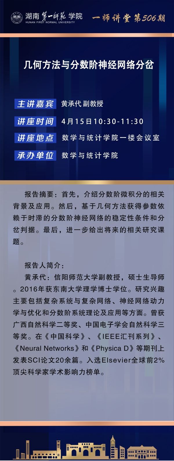 学术报告|数学高峰讲坛第87期:几何方法与分数阶神经网络分岔