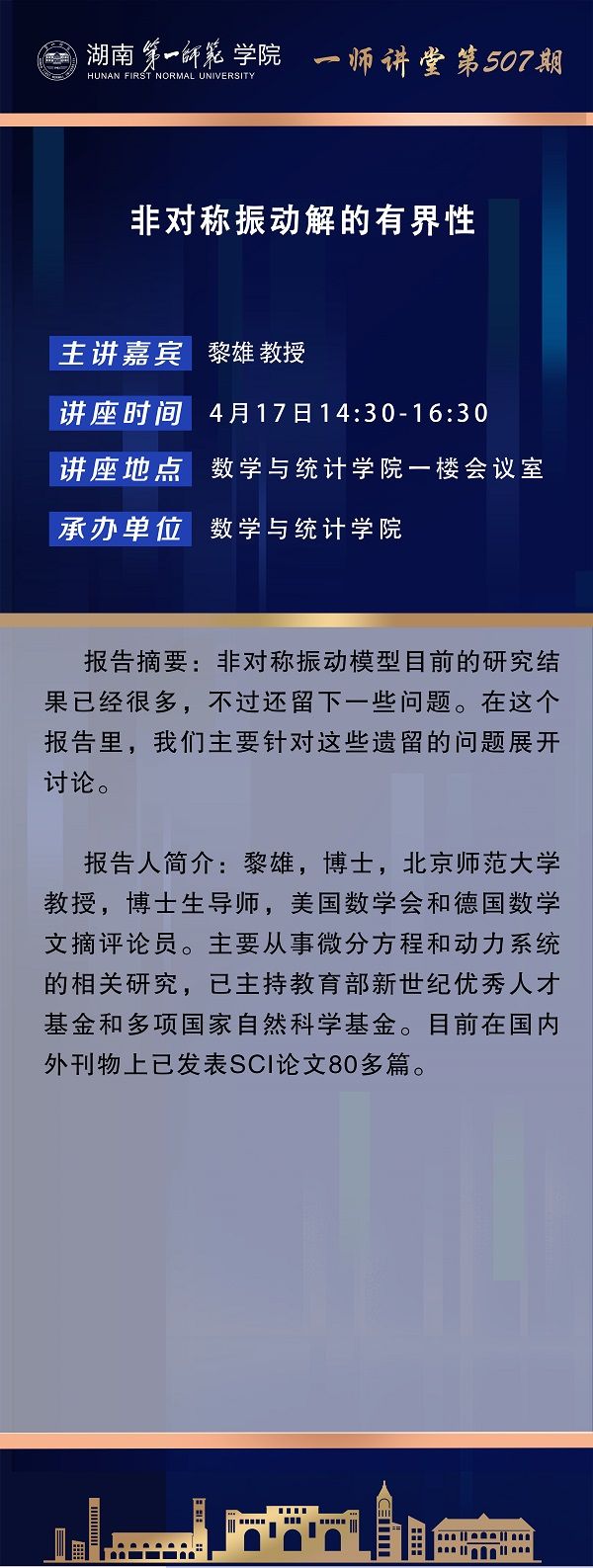 学术报告|数学高峰讲坛第88期:非对称振动解的有界性