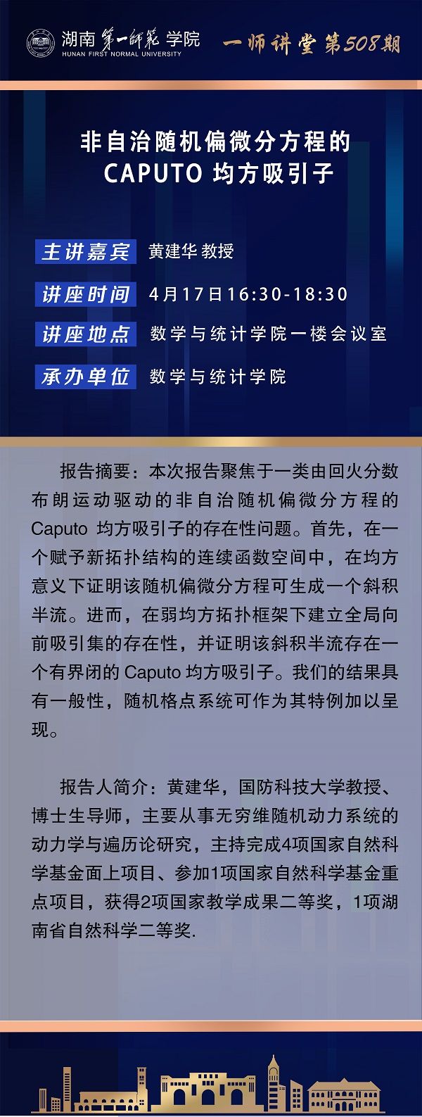 学术报告|数学高峰讲坛第89期:非自治随机偏微分方程的Caputo均方吸引子