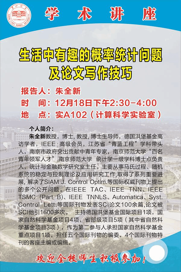 12月18日南京师范大学朱全新教授到我校讲学
