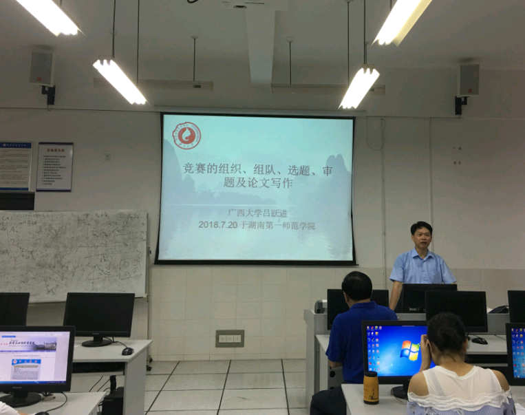 7月20日上午,广西大学教授、广西首届高校教学名师。中国工业与应用数学学会理事、硕士生导师吕跃进教授为我校师生做了题为《数学建模的组织、组队、选题、审题及论文写作》及《层次分析法在建模中的应用》的二个学术讲座。讲座由数学与计算科学学院肖建华教授主持,数学与计算科学学院张更容教授、杨旭光博士以及来自数学与计算科学学院、信息与工程学院学院的50多名师生到场聆听。