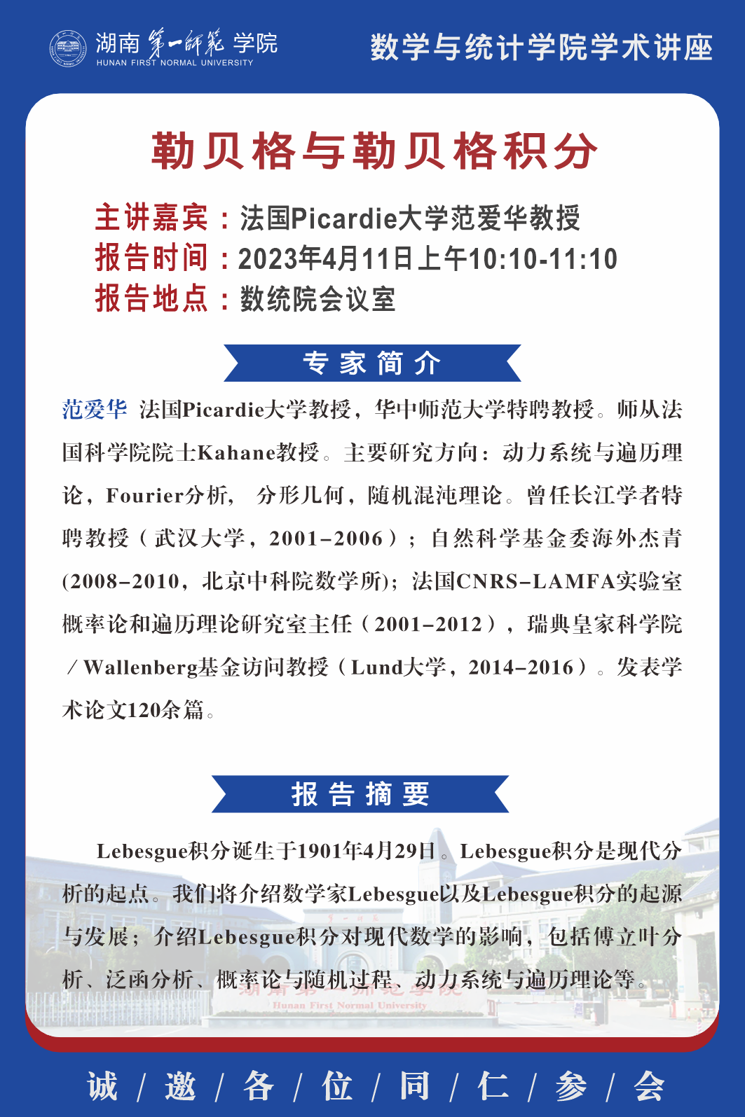 学术报告|数学高峰论坛第2期:勒贝格与勒贝格积分