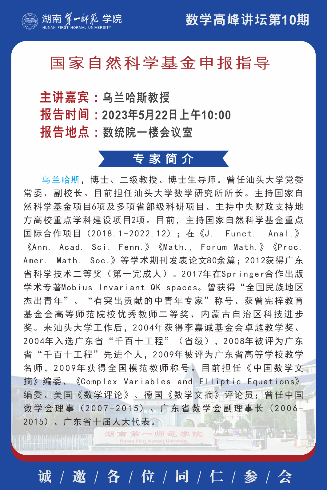 学术报告|数学高峰讲坛第10期:国家自然科学基金申报指导