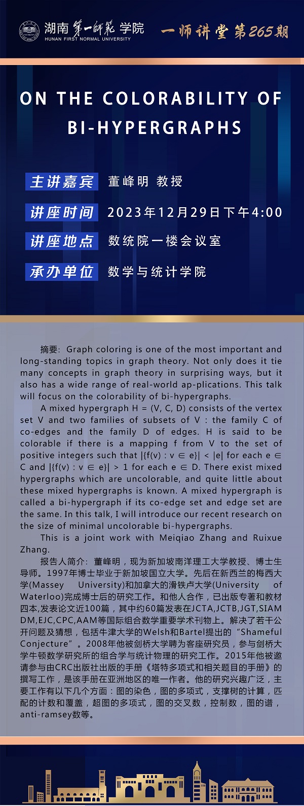 学术报告|数学高峰讲坛第35期:On the colorability of bi-hypergraphs