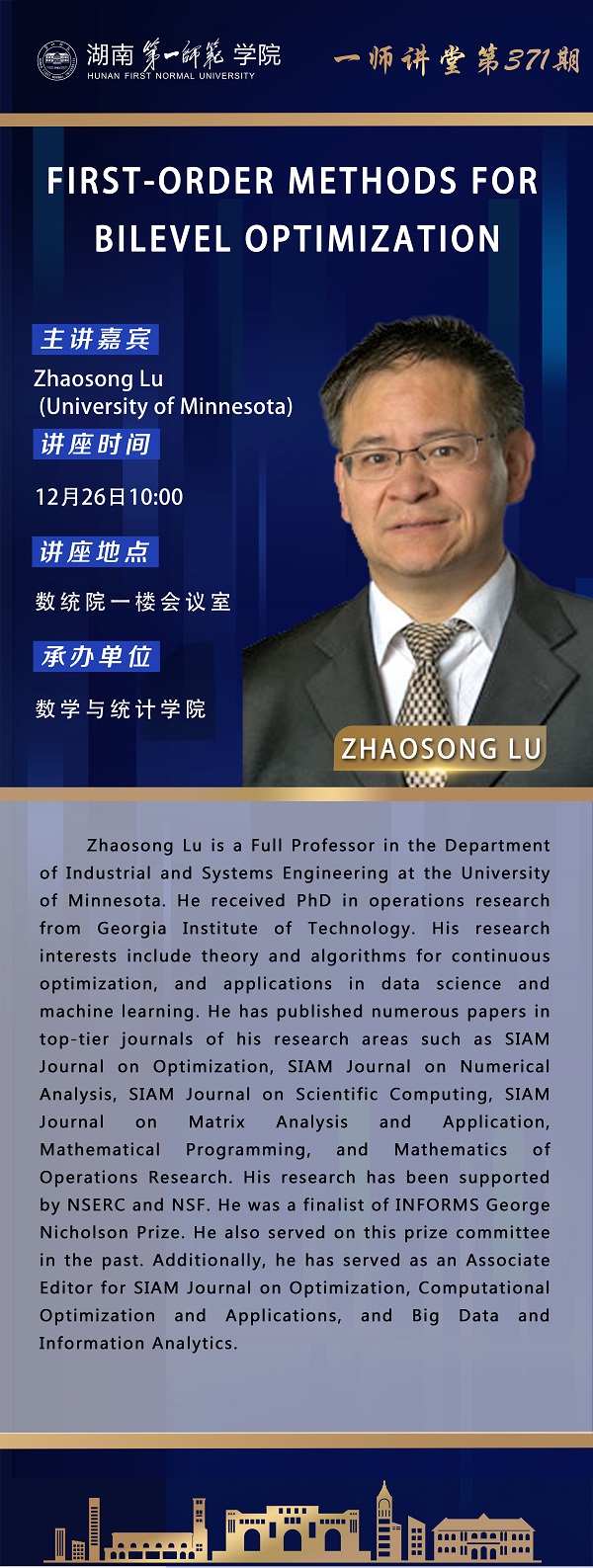 学术报告|数学高峰讲坛第52期:First-Order Methods for Bilevel Optimization