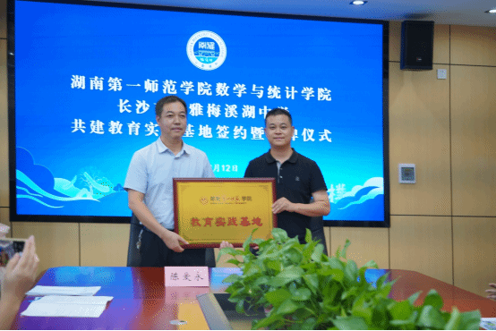 院长陈爱永、数学与应用数学系主任赵清贵、实习指导教师林敏和长沙市南雅梅溪湖中学副校长刘翔、教科室主任蒋孝文及部分指导教师共同参与仪式。仪式由蒋孝文主持。