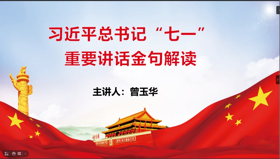 首先,人妻 党总支书记曾玉华书记为小教教研室支部全体党员对习近平总书记“七一”重要讲话金句进行解读,解读了“江山就是人民、人民就是江山,打江山、守江山,守的是人民的心。中国共产党根基在人民、血脉在人民、力量在人民。”,“任何想把中国共产党同中国人民分割开来、对立起来的企图,都是绝不会得逞的!9500多万中国共产党人不答应!14亿多中国人民也不答应!”等金句,句句铿锵有力,掷地有声,振奋人心。