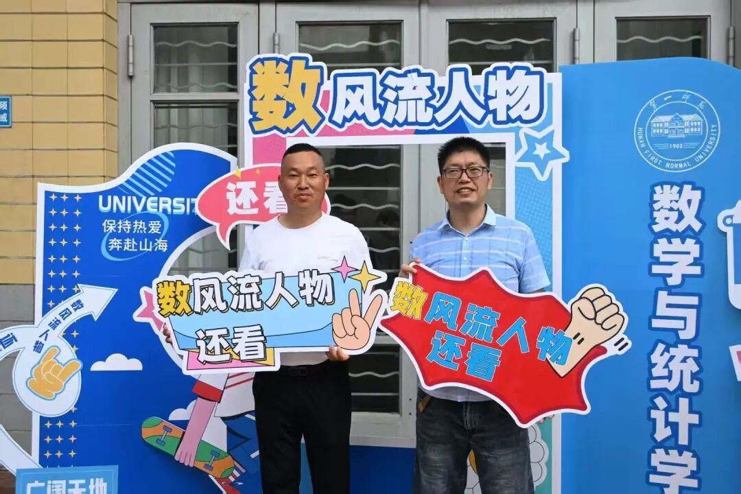 “数・风流人物”迎新活动巧妙融合毛主席诗词与数学元素,打造了特色主题打卡区。现场设有趣味手牌,吸引新生、家长驻足互动,领导、志愿者也纷纷加入合影行列,与新生共同记录入学美好瞬间。