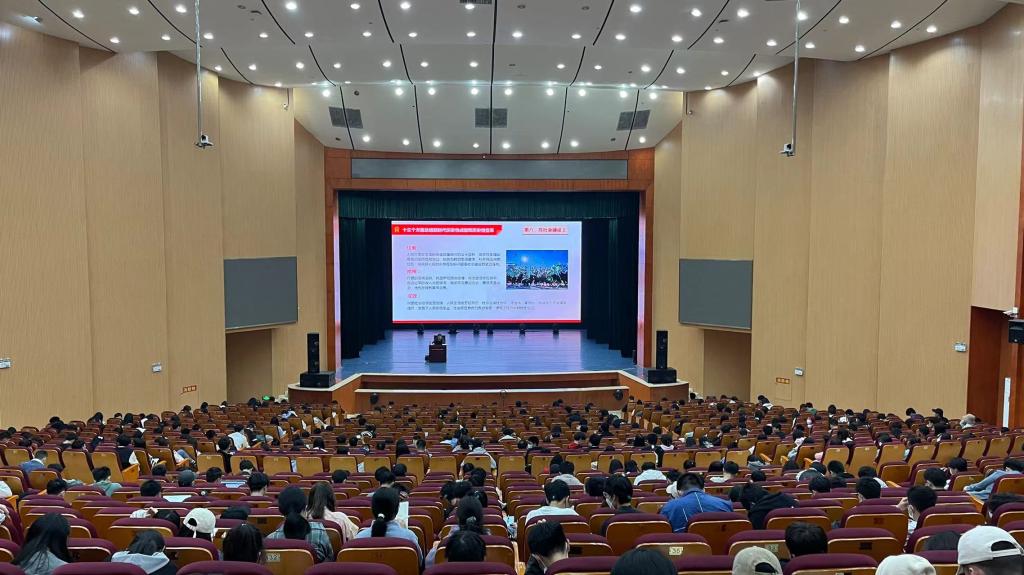 党委书记罗成翼在田汉大剧场展开形势与政策讲座。学院20级833-835数学班全体学生参加了本次讲座。