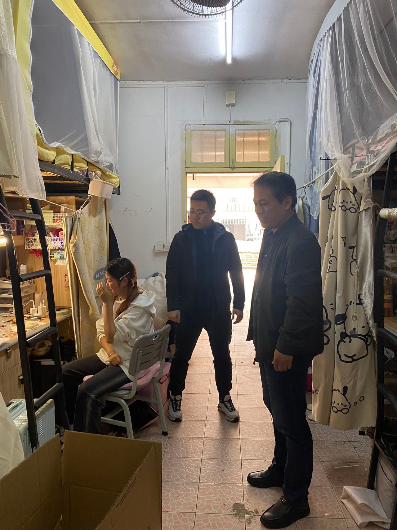 书记下寝 | 引导合理作息,守护学生安全 发布时间:2024-11-01 作者: 浏览次数:次 11月1日下午,人妻 党委书记曾玉华带领辅导员走进4栋寝室,提醒学生们要珍惜大学时光,合理规划学习与休息时间,保持良好的生活习惯,同时也要加强自我保护意识,注意个人财物安全及用电安全。