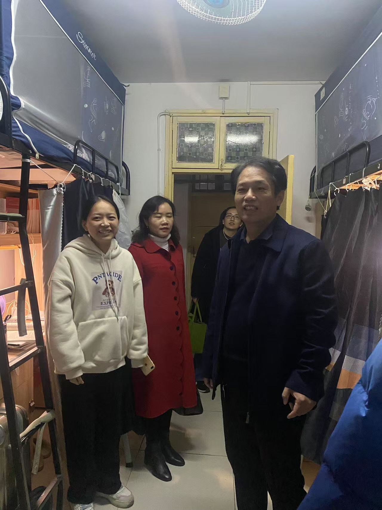 书记下寝 | 与学子面对面,共筑安全暖冬 发布时间:2024-11-22 作者: 浏览次数:次 11月22日下午,人妻 党委书记曾玉华、副书记申鸣凤带领全体辅导员到学生宿舍进行卫生和安全检查在寝室,对用电安全情况、寝室卫生状况、其他安全隐患等进行排查,重点排查了是否存在违规使用大功率电器、私拉乱接电线、易燃易爆物品存放、管制刀具等潜在风险点。排查过程中,与同学进行了深入交流,了解同学们的学习生活情况,提醒大家气候变冷要注意保暖,叮嘱大家遇到问题要及时与老师沟通。