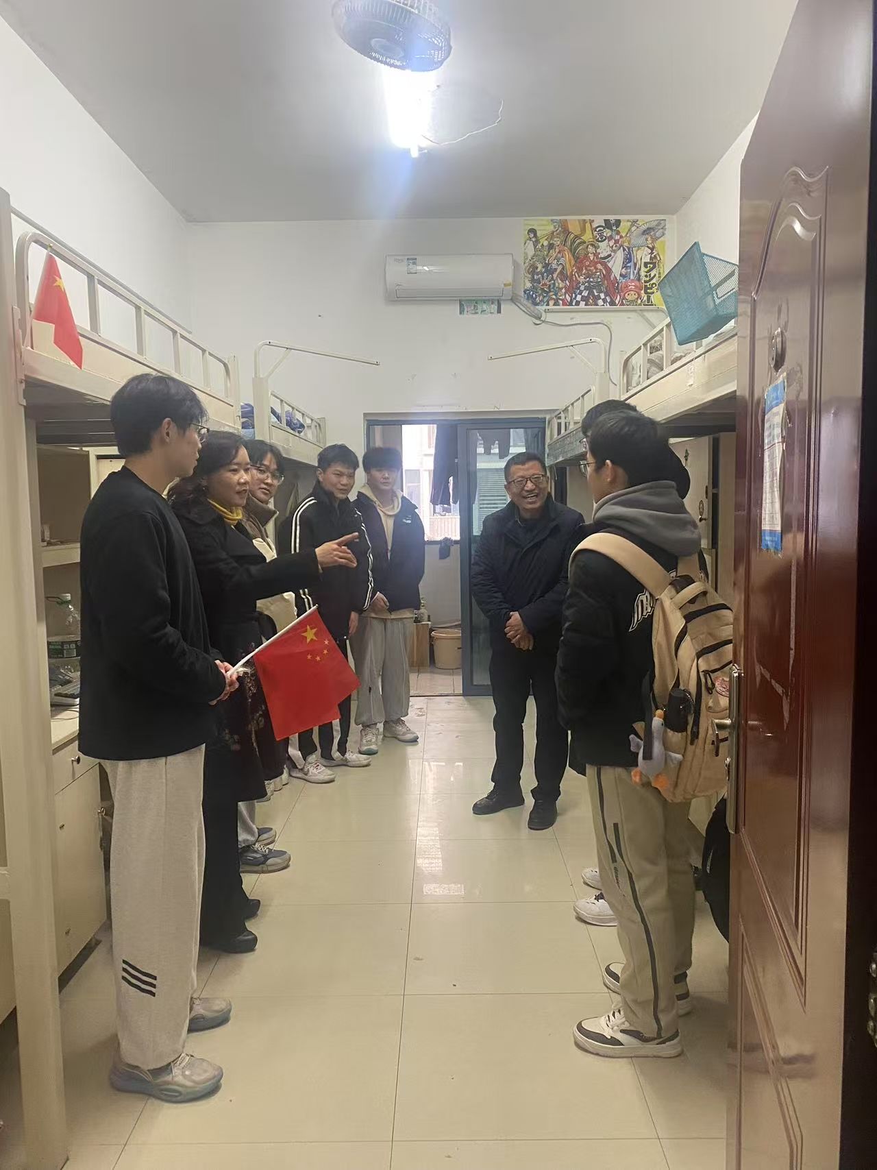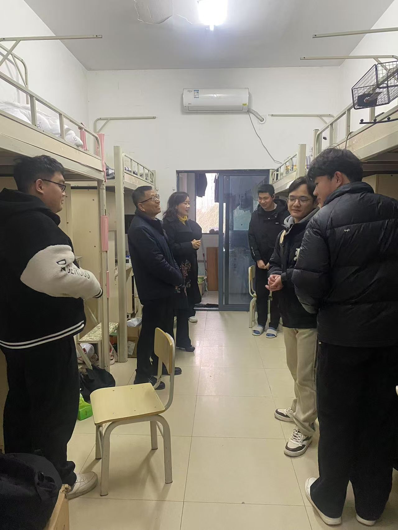 书记下寝 | 抓卫生、查安全,共建舒适安全生活环境 发布时间:2025-03-07 作者: 浏览次数:次 3月7日下午,人妻 党委书记阮东彪、副书记申鸣凤带领全体辅导员深入男生宿舍走访,检查过程中,老师们仔细查看了各寝室的整体卫生状况,还重点检查了床铺整理、桌面物品摆放、地面清洁等细节,并对电器设备等进行了逐一排查。针对部分寝室存在的物品摆放杂乱等问题,提出了整改要求;老师们也叮嘱同学们要时刻绷紧安全这根弦,切实提高安全防范意识,养成良好的生活习惯,共同营造安全、整洁、舒适的学习生活环境。