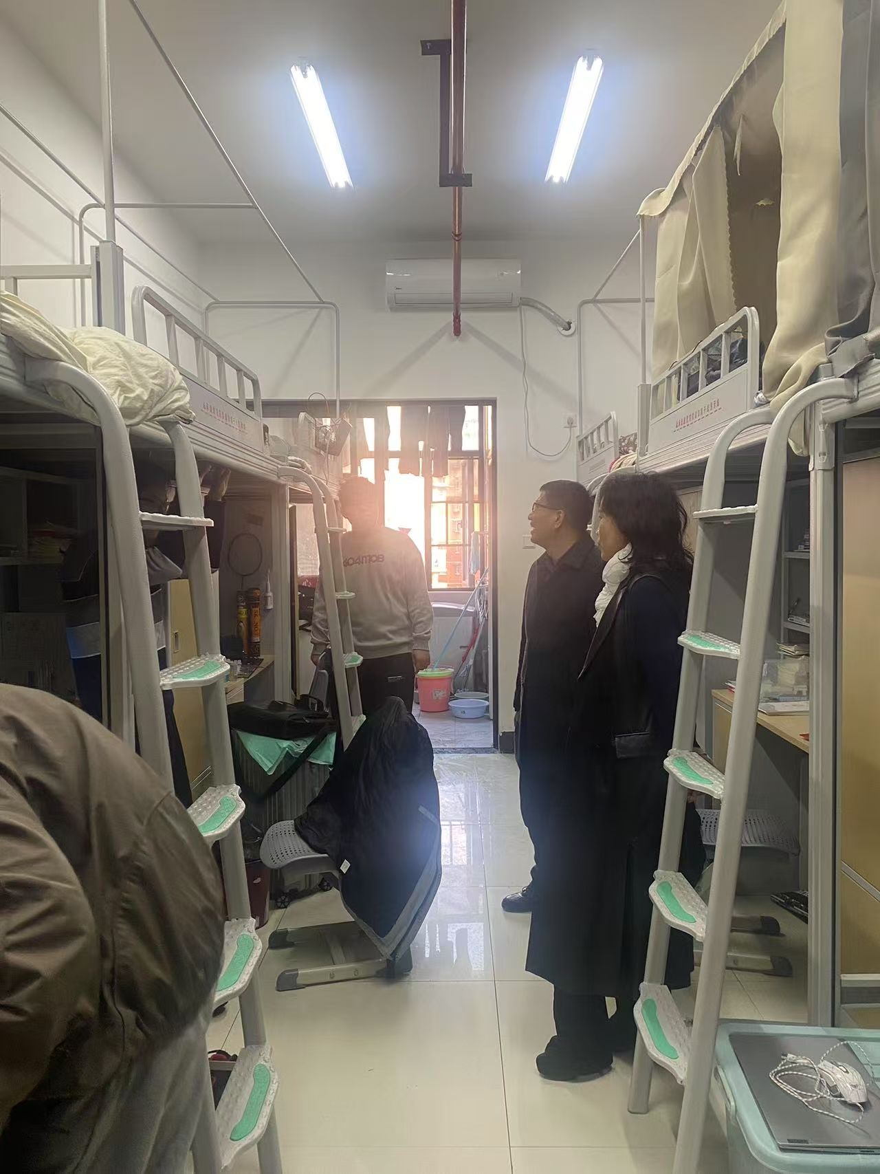 书记下寝 | 深耕宿舍管理,护航学子安居 发布时间:2025-03-18 作者: 浏览次数:次 3月18日下午,人妻 党委书记阮东彪、副书记申鸣凤带领辅导员走访17栋学生宿舍,进一步了解了人妻 学生的住宿情况,更好地规范了学生宿舍管理,为学生提供了一个安定、有序、整洁的生活环境,并针对具体问题提出了意见和建议。