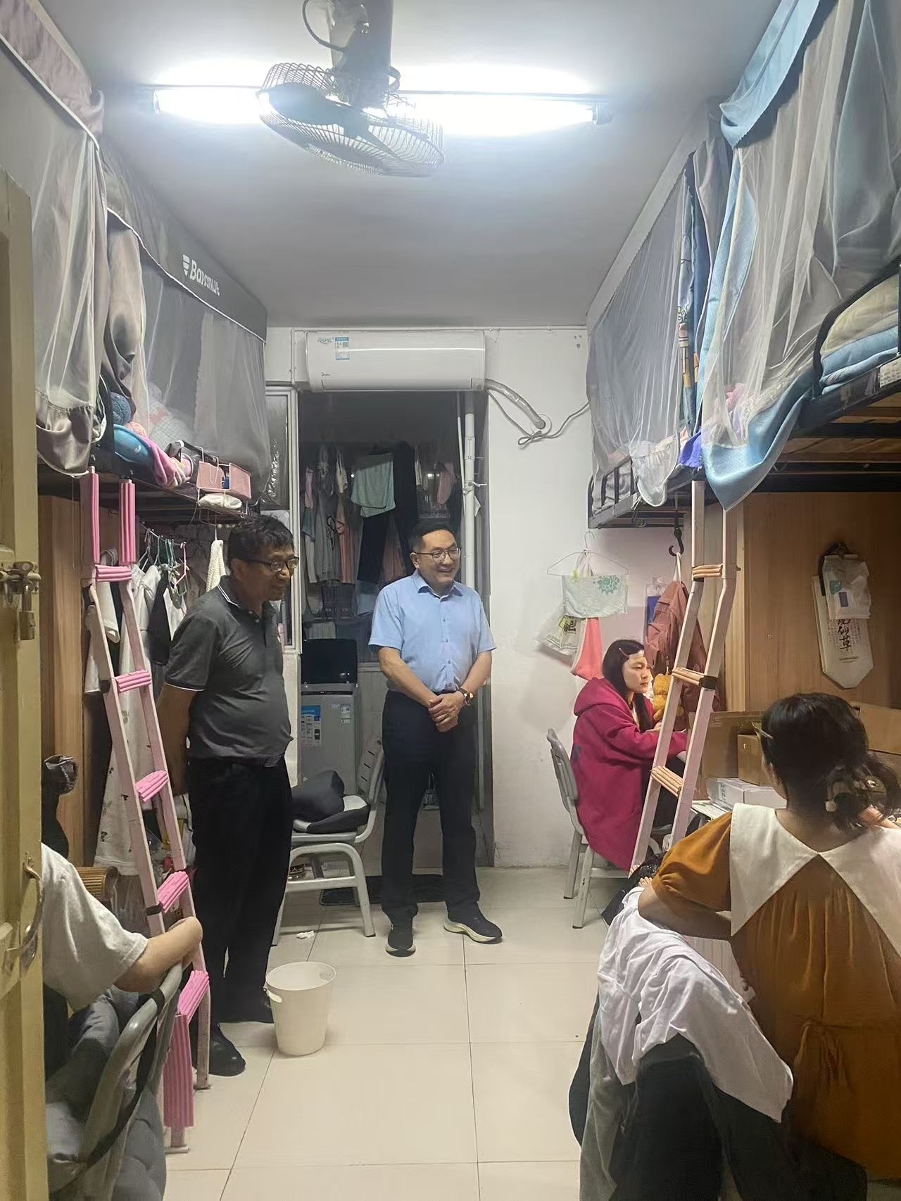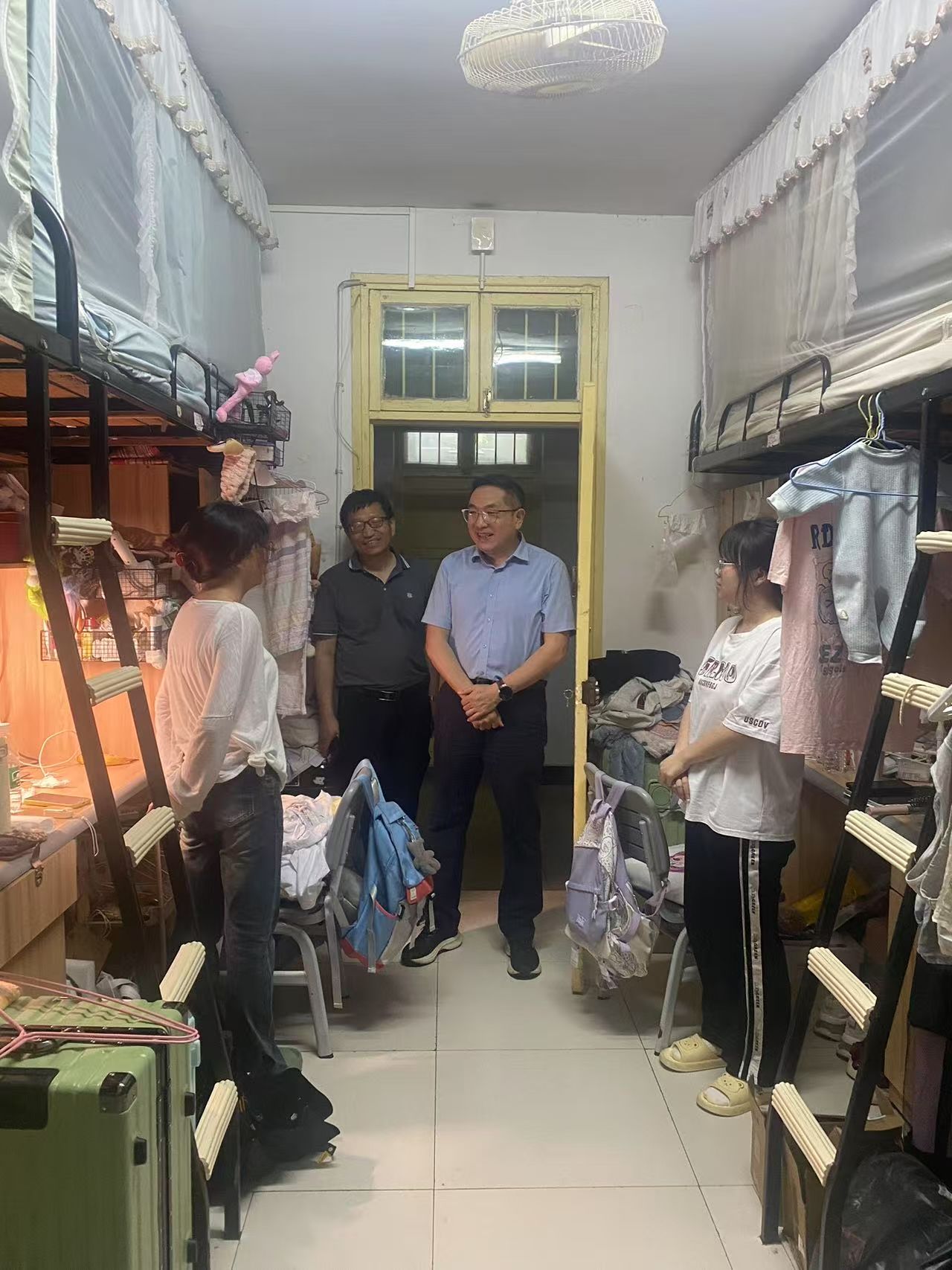 书记下寝 | 学校领导深入数统院学生寝室 共话学风建设与成长成才 发布时间:2025-04-21 作者: 浏览次数:次 4月21日晚,学工部部长周大庆,人妻 党委书记阮东彪走访数统院学生寝室,在走访过程中,周部长和阮书记细致询问了同学们的日常作息及对学风建设的理解,他们向同学们强调,只有长效化推进优良学风建设,才能培养出高质量人才,良好的学习习惯是高效学习的基础,鼓励同学们劳逸结合,保持积极向上努力奋进的精神状态。随后,阮书记来到图书馆查看数统院考研学子的学习情况,为同学们加油鼓劲。