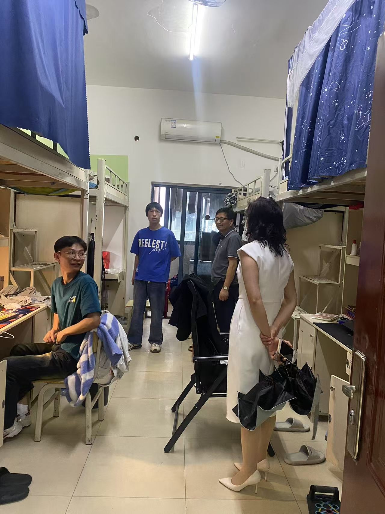 书记下寝 | 暖心走访,从“心”关怀:院领导深入宿舍与学生畅谈身心健康 发布时间:2025-05-09 作者: 浏览次数:次 5月9日下午,人妻 党委书记阮东彪、副书记申鸣凤带领辅导员走访16栋学生宿舍,检查了寝室卫生和安全问题,与同学们展开交流,从日常生活、学习压力等方面入手,关心同学们的身心健康,分享了许多合理安排作息、调节情绪的方法,鼓励大家以积极乐观的态度迎接学习与生活的挑战。
