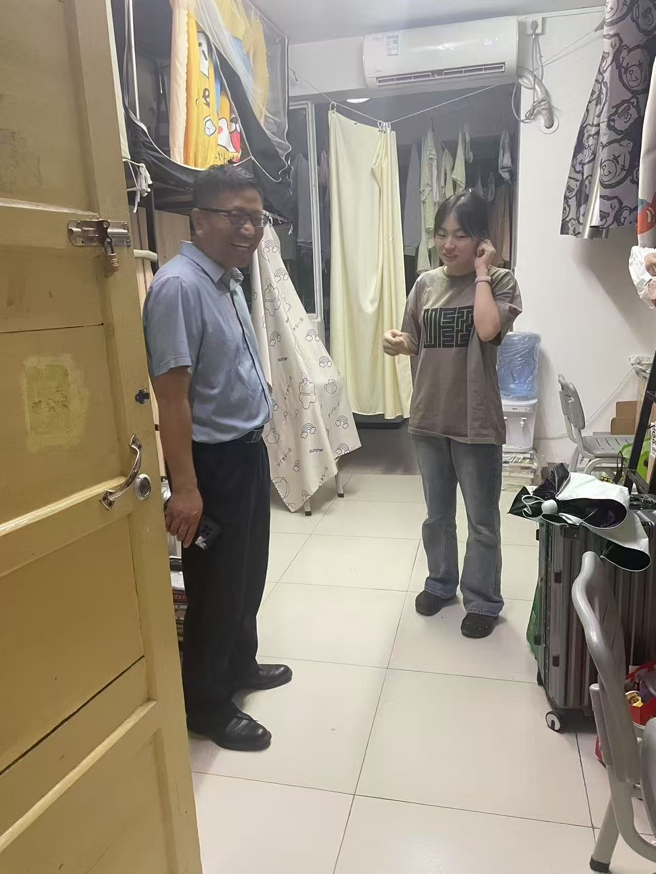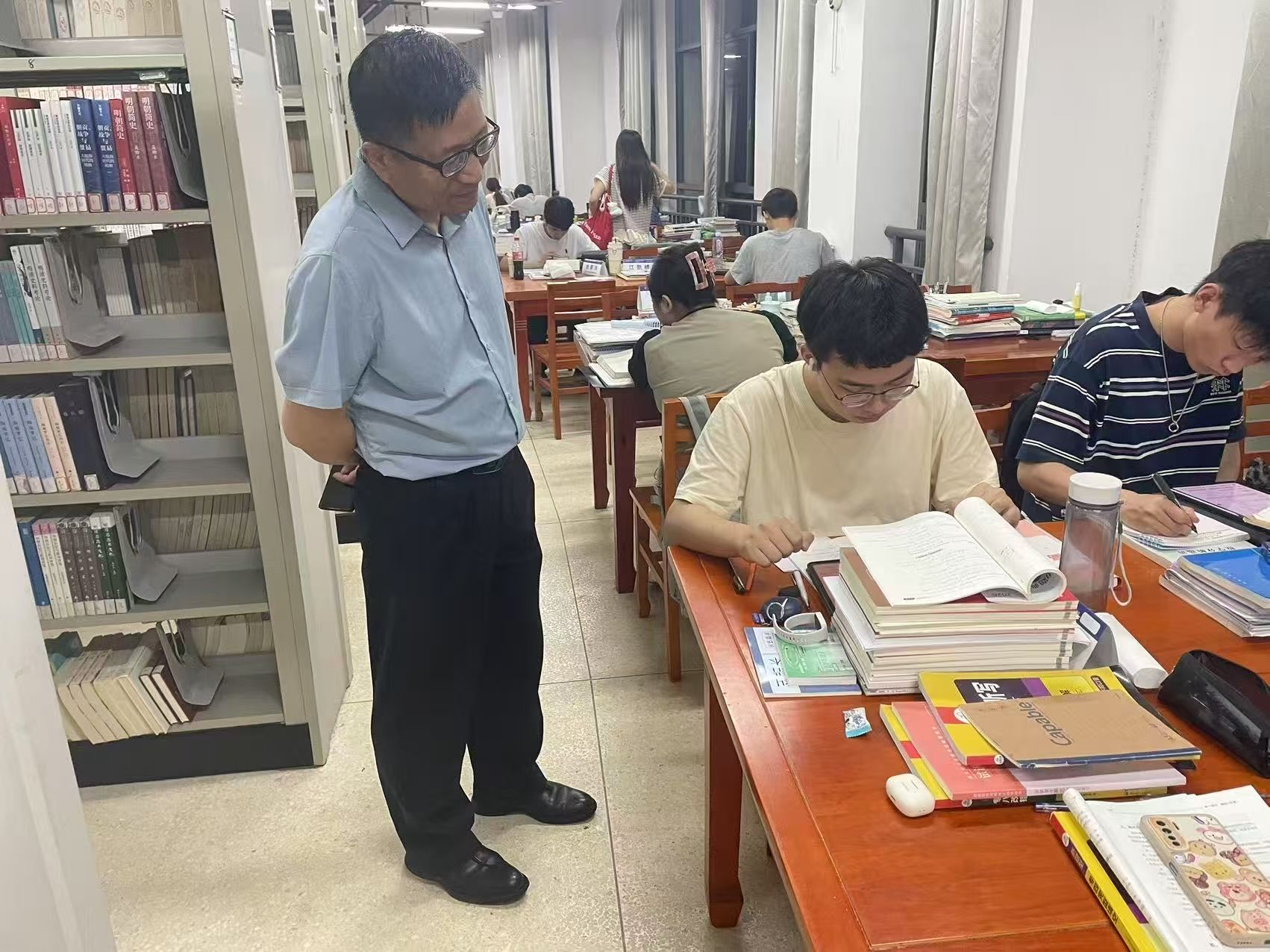 书记下寝 | 从图书馆到寝室:数统学院开展学风“全链条优化”专项检查 发布时间:2025-05-15 作者: 浏览次数:次 5月15日,人妻 党委书记阮东彪,副书记申鸣凤带领辅导员及班主任深入学生寝室及图书馆自习区,针对学风建设开展专项检查工作。书记们首先在图书馆查看了同学们的学习情况,随后与各寝室学生谈及学业进展,现场解答学习困惑,叮嘱科学作息规律对提升学习效能的重要作用,同时也通过个性化交流建议学生建立时间管理机制、控制电子设备使用频度,着力构筑优质学习空间。