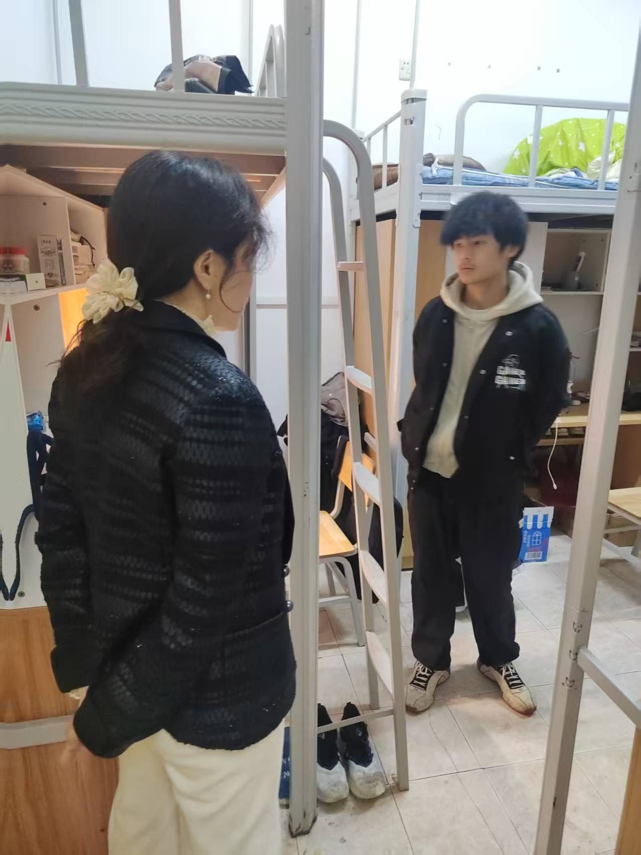 书记下寝 | 新学期,新气象!数统学院领导深入一线关怀学子 发布时间:2025-02-28 作者: 浏览次数:次 2月28日下午,人妻 党委副书记申鸣凤带领辅导员在城南校区查课,学生“三率”达标,课堂井然有序,随后走访了学生寝室,叮嘱同学们要做好学习规划,提高对自己的要求,珍惜时间,充实自己。