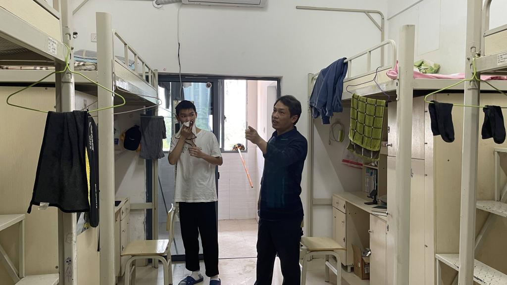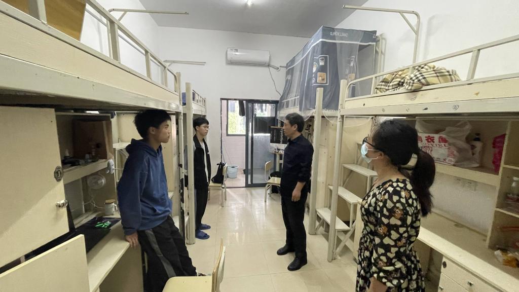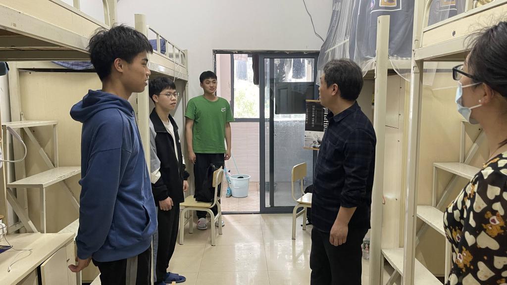 书记下寝 | 从严从实从细开展宿舍疫情防控 发布时间:2022-03-15 作者:袁伟杰 浏览次数:次 3月15日中午,人妻 党委书记曾玉华带领辅导员毕倩、袁伟杰走访了16栋男生寝室,督促宿舍疫情防控从严从实从细开展。他强调,面对疫情反扑,我们必须严阵以待、居安思危。宿舍成员勠力同心开展防疫卫生保障,严防死守战疫“红线”。