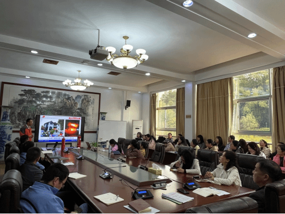 11月4日,消防教官周洋为全院教师进行专题培训。重点讲解办公楼电路安全、消防设施日常检查及突发事件指挥。结合学院办公楼建成已久、楼顶漏水的实际情况,分析漏水可能导致的电路短路风险,提出防范措施,提升教师安全管理责任感。