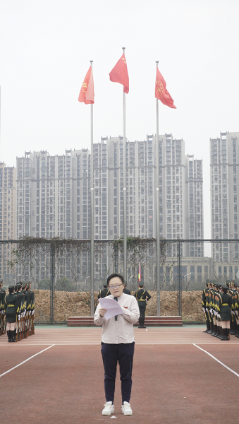 随后,学院党委副书记李静发表了主题为“践行绿色发展理念,携手共创绿色校园”的国旗下讲话。她在讲话中提出,“绿是生命的颜色,有了绿色,才有了我们美丽的校园”。这一年,校园环境翻天覆地的变化离不开全体同学的卫生习惯的养成和环境保洁与保护意识。她强调,我们全体师生要从自身的卫生习惯和卫生意识做起,养成良好的卫生习惯和意识;要加强环保意识,共同爱护校园环境;要节能增效,争做节约表率,树立起环保意识,做到人人关心节约、人人参与节约。为珍惜绿色、爱护绿色、创造绿色,携手共创绿色校园,献出自己的一份力量。