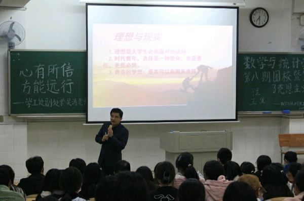 11月10日晚19时,人妻 第八期团校暨第十期青年马克思主义骨干班专题讲座于玉衡南101举行。我校学工处副处长吴涛老师受邀作为本次专题讲座的主讲嘉宾,他以“心有所信·方能远行”为主题,为人妻 200余名青马学员开启信仰之门。