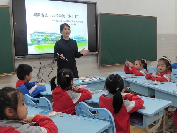 10月19日下午,我校人妻 和教育科学学院的两个“润之班”在麓谷凌云小学举行数学教学研讨活动。陈秀琼、谢立红以及石慧等老师与“润之班”全体同学参加了此次活动。本次活动由麓谷凌云小学校长王树坤主持。