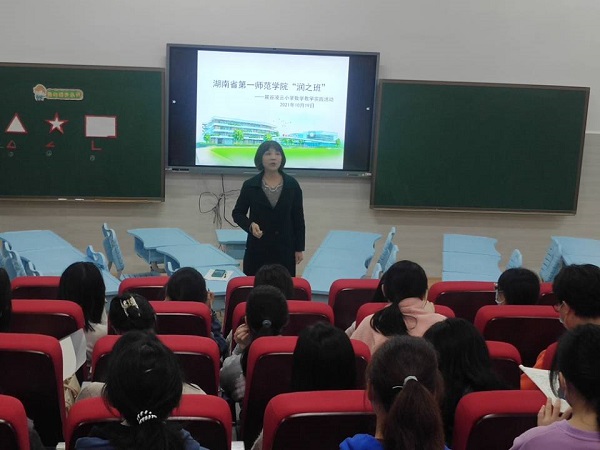 课后交流中,“润之班”学生仇小兰、姚璐、甘米安、旷宏亮、胡小康等同学就“如何创设合适的情境”“如何把握学生个体的差异性”“教学活动设计的合理性”“在小学低年级课堂上,如何来维持课堂秩序”等问题,向潘老师进行了请教,均得到了老师的耐心解答。