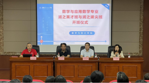 于城南校区多功能报告厅、教学楼507、教学楼508分专业分场地举行润之英才班与润之拔尖班开班仪式暨全院专业介绍会。学院党委书记曾玉华、院长陈爱永、副书记申鸣凤、数学与应用数学系主任赵清贵、信息与计算科学系主任高欢、应用统计学系主任颜斌、资深指导教师及班主任张更容、陈秀琼、何孝凯、李盛禹、陈星受邀出席。学工办主任吉先菊、分团委书记袁伟杰、新生辅导员毕倩、罗庆红及2024级全体新生参加了本次大会,会议由申鸣凤主持。