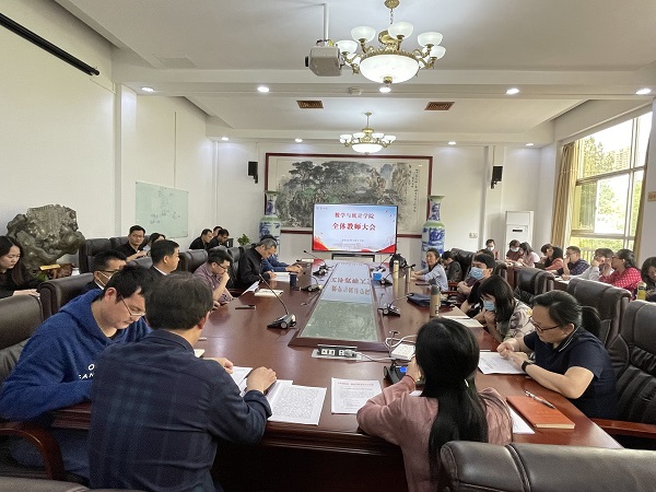 随后,李雅湘对《实施意见》的总体目标和主要任务进行了详尽的解读并部署具体工作。一是要落实落细新修订的人才培养方案,特别是提高课程的“两性一度”,组建核心课程教学团队,实施规范课堂建设。二是要深化公共数学考研教学改革,分类建设公共数学课程,将公共数学课程的教学内容与考研的数学结合起来,开设数学考研辅导班。三是要建好新办的应用统计学专业实验室,在“互联网+”“挑战杯”等竞赛等取得新突破。四是要打造高层次科研平台,力争在国家社科、自科等重大重点项目及国家级成果奖上实现突破。她强调,全院师生员工要统一思想,认真学习贯彻文件精神,推动学院内涵式高质量发展。各个系室要对标对表,找差距,补短板,对照文件所规定的五个引领落实,制定工作方案,明确工作步骤,确保工作任务顺利完成。
