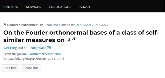 教师唐微博士与王志勇博士合作在国际著名数学期刊《Forum Mathematicum》上发表题为“On the Fourier orthonormal bases of a class of self-similar measures on Rn的学术论文。