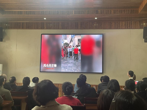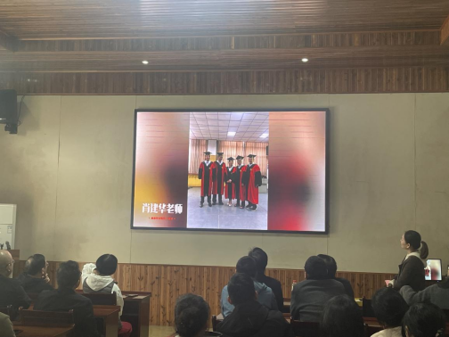 仪式现场,气氛热烈,暖意融融。全体教职工一起观看了由学院精心收集并制作的三位老师从教几十年来的纪念视频短片。短片记录了三位老师多年来的工作经历和精彩瞬间,以及对湖南一师建设与发展的辛勤付出。一张张老照片,一个个生动画面,一声声美好祝福,饱含大家对三位老师的深情回忆与恋恋不舍!