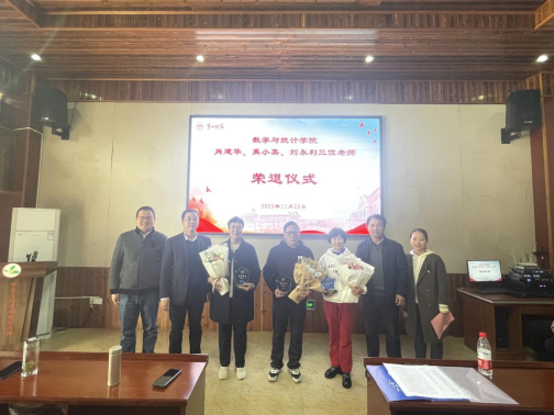 分工会举行了一场简朴又温馨的荣退仪式,欢送肖建华、刘永利、禹小英三位老师光荣退休,数统院党委书记曾玉华、副院长(主持工作)陈爱永、党委副书记马青梅、副院长王增赟及全体教师参加,仪式由马青梅主持。