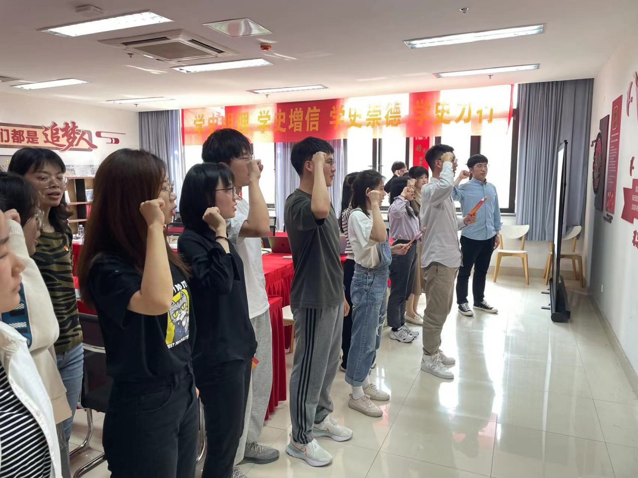 会上,支部书记陈晓玲和与会党员轮流分享、讨论了了自身学习“习近平总书记在庆祝中国共产主义青年团成立100周年大会上的重要讲话精神”的心得感悟和对即将召开的党的二十大的展望。毕业生党员方常仙表示,在二十大到来之际,我们学党史,是为了不忘初心。初心是什么,初心就是不忘记来时的路。即将走出校园的她将继续不忘初心,牢记使命,在教师的岗位上发光发热;作为一名党员,她也将作为社会主义事业的建设者之一,奋进新时代,努力为祖国的发展贡献自己的绵薄之力!刚转正的党员李爽认为,青年人是最具朝气与活力的一群人,背负着是党与国家的未来,更应坚定理想信念,听党话,跟党走。同时,作为一名历史学专业的研究生更要以史为鉴,在追寻革命先辈的足迹中感悟历史脉络,守护入党初心,继续奋斗在新时代征途中。一代人有一代人的长征,一代人有一代人的担当。时代各有不同,青春一脉相承,作为新时代的青年,要继续坚定不移跟党走,为中华民族伟大复兴而贡献自己的力量,争做伟大理想的追梦人,争做伟大事业的生力军,让青春之我奋进新征程!预备党员郑凯歌认为,作为一名新时代的青年,我们应该为在中国共产党的坚强领导下,为实现前面建成社会主义现代化强国的第二个百年奋斗目标贡献自己的一份力。具体来说,首先要加强对党章、党史和党的各项方针、政策、理论等的学习,提升自身的思想政治觉悟。其次,要加强对学习强国的使用,了解国内外大事,对时局有一个清楚的把握和自身的认识,从而把未来走向与服务国家战略需要紧密结合。还要广泛阅读研究领域,积极学习专业知识,提升专业素质。最后,要把所学的理论和知识运用到实践中去,助力党和国家的发展。
