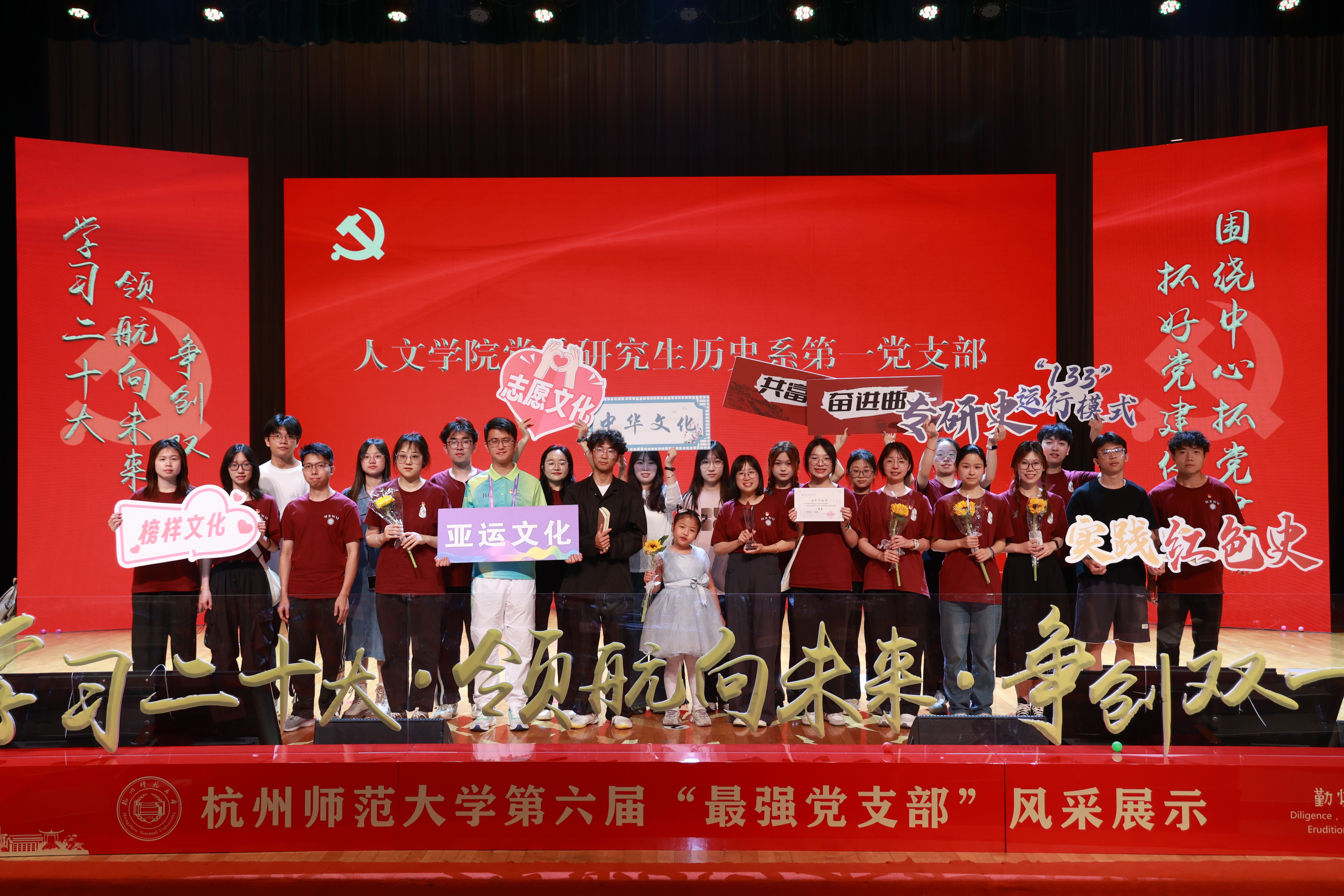 6月5日下午,“最强党支部”风采展示活动在仓前校区梦非剧场举行,我院研究生历史系第一党支部从全校328个党支部中脱颖而出,以总分第三名,学生党支部总分第一名的成绩斩获二等奖。