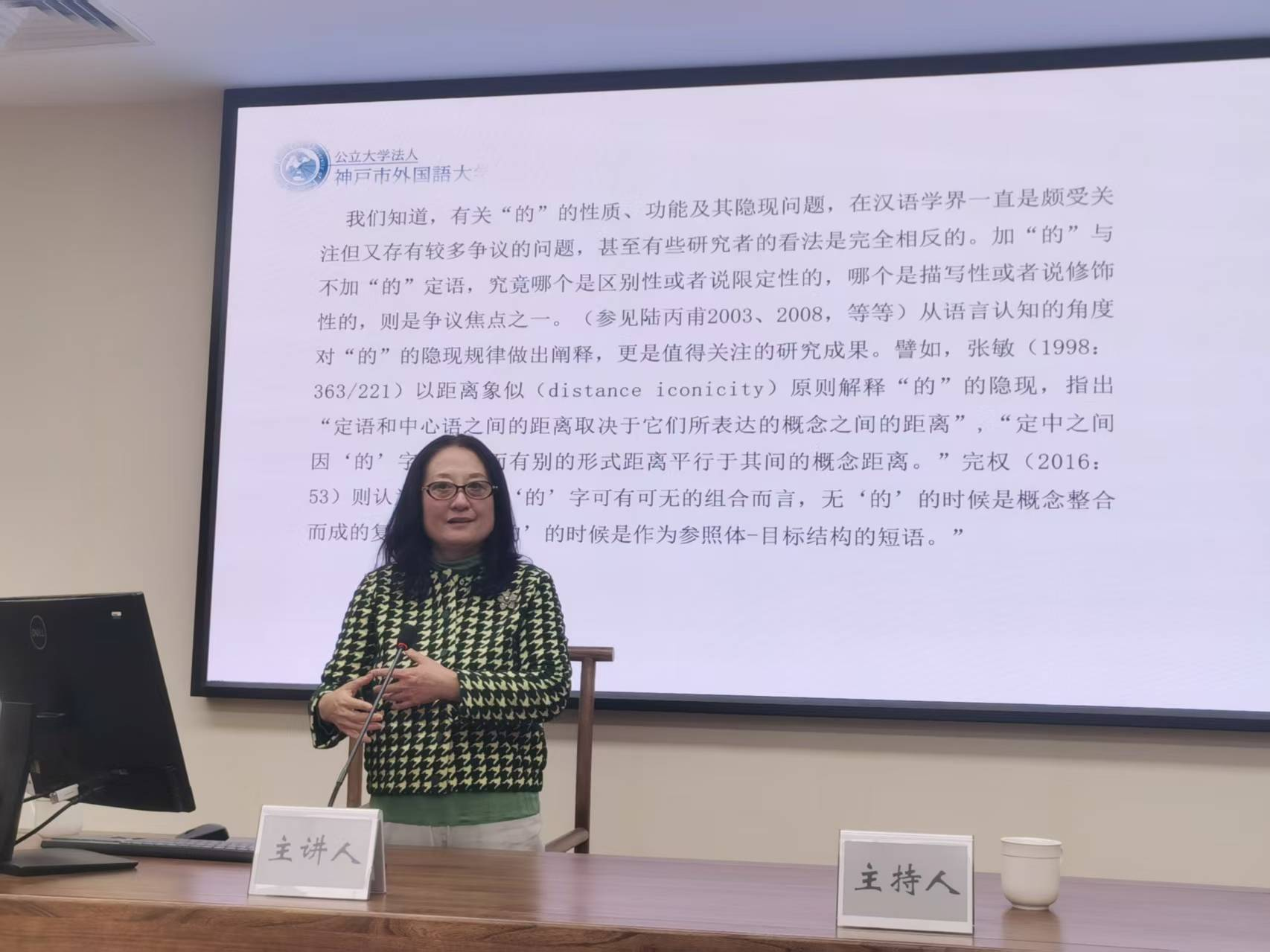 2025年11月27日晚,日本神户市外国语大学中文系教授、博士生导师任鹰教授应邀为我院师生作了题为《以“用”为本的“大语法”观念和汉语语法教学》的学术讲座。活动由单宝顺老师主持,约30余名师生参与。